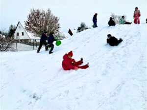 Unsere sportlichen Nachwuchstalente haben das Winterwetter kurzerhand in den Sportunterricht integriert und bewiesen: Rodeln trainiert nicht nur die Beinmuskulatur, sondern auch Gleichgewicht, Teamgeist und vor allem das Lachen. Zwischen Schneeflocken, Tempo und kleinen Schneeengeln wurde klar – Bewegung macht draußen mindestens genauso viel Spaß wie drinnen.