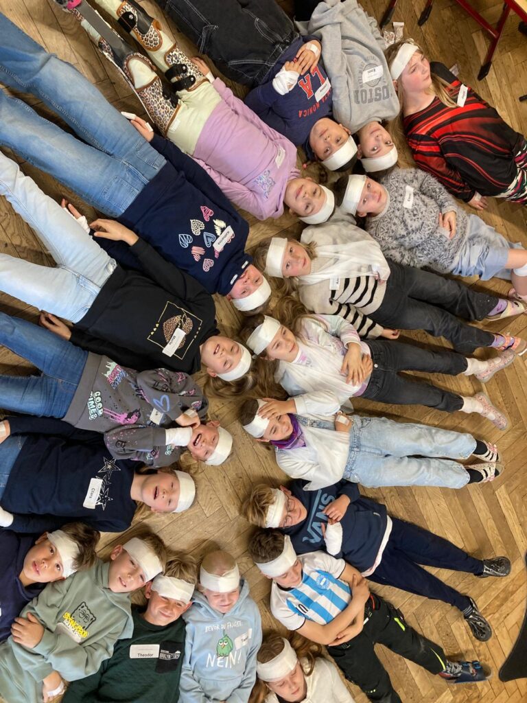 Mit viel Engagement und anschaulichen Beispielen lernten die Kinder, wie sie sich im Notfall richtig verhalten können. Vom Absetzen eines Notrufs über das Anlegen von Verbänden bis hin zur stabilen Seitenlage – unsere Viertklässler waren mit großem Interesse und Eifer dabei. Natürlich durften auch praktische Übungen nicht fehlen, bei denen fleißig ausprobiert, gefragt und geholfen wurde.